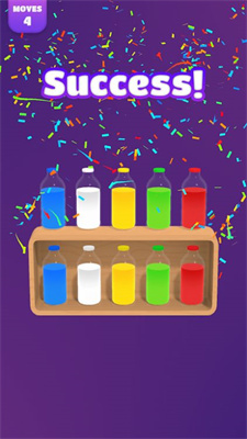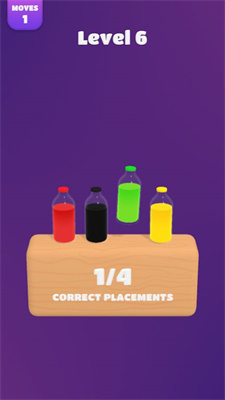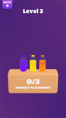 1. 匹配机制:玩家通过拖动屏幕上的瓶子,将它们与箱子里的瓶子颜色匹配。每次成功匹配,计数器就会加一,当所有瓶子都匹配成功时,即可顺利通过关卡。