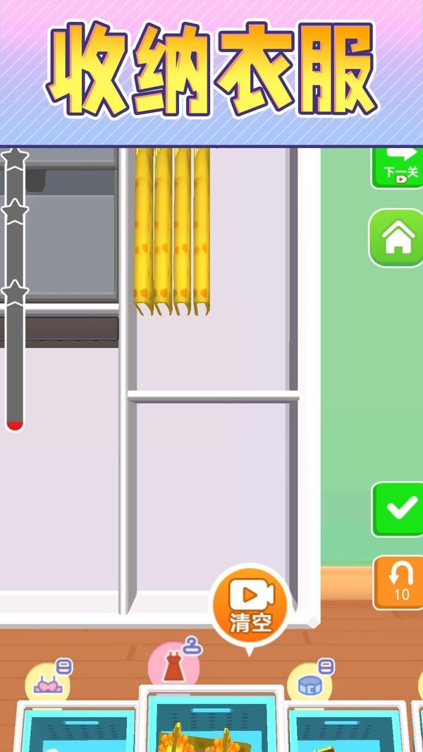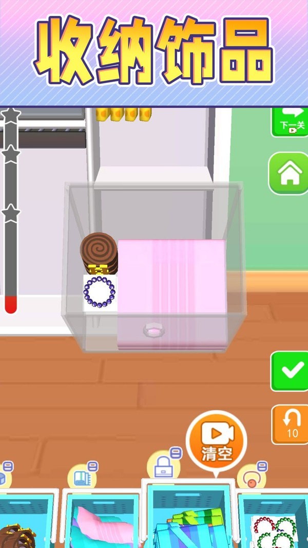 2. 解锁新场景:随着游戏的进行,玩家将解锁更多的场景,如厨房、书房、衣帽间等,每个场景都有独特的收纳挑战。