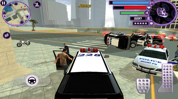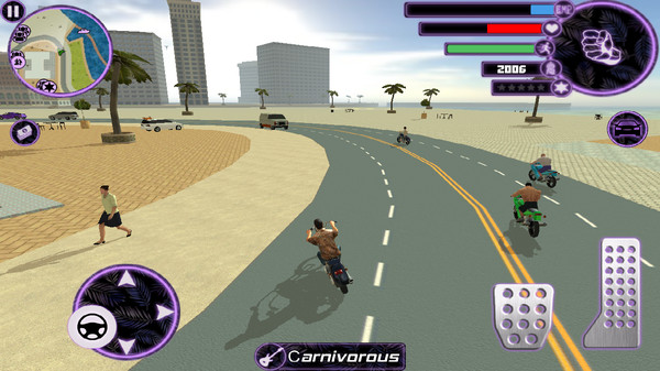迈阿密:自由之城2是一款充满刺激与自由的安卓游戏,玩家将扮演一名黑帮老大,在迈阿密这座繁华的城市中自由行动,尽情享受冒险与犯罪的乐趣。游戏采用3d仿真建模和真实的物理引擎,为玩家呈现出一个逼真而广阔的城市环境。在这里,你可以驾驶各种交通工具,如自行车、摩托车和汽车,在城市中穿梭;你也可以抢劫、偷窃,甚至与警察展开激烈的追逐战。游戏的玩法轻松有趣,操作简便,让玩家能够迅速沉浸其中。