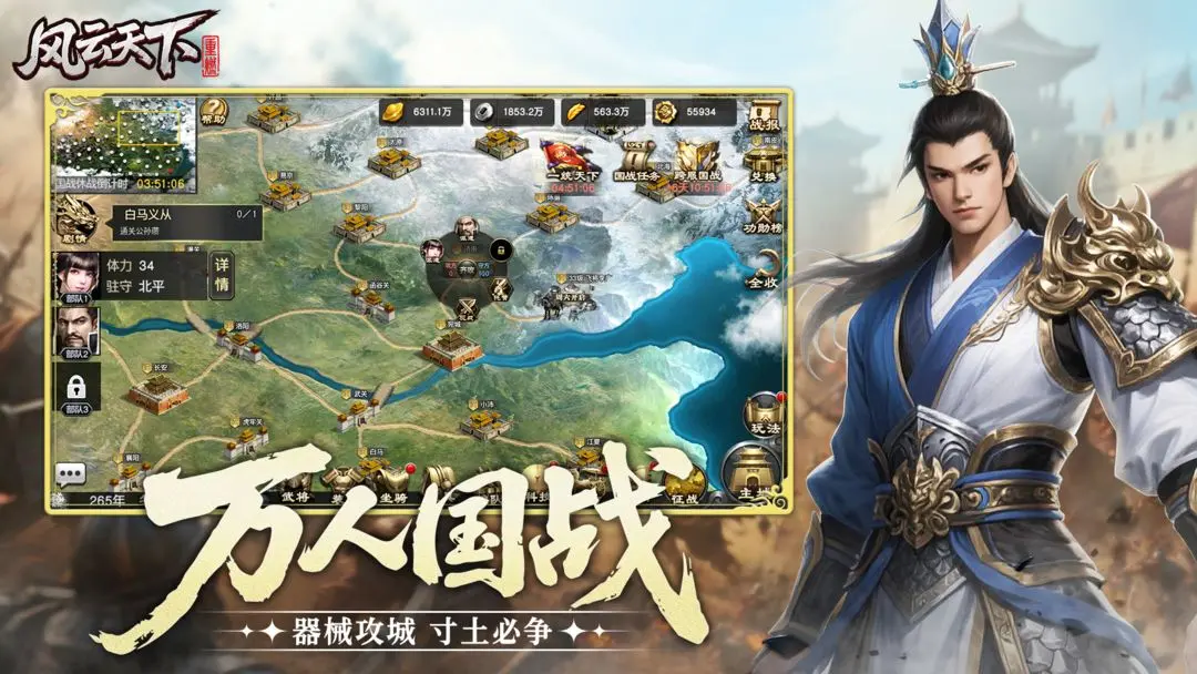 风云天下重燃畅玩版是一款备受瞩目的安卓策略游戏,它以独特的三国题材为背景,为玩家呈现出一个波澜壮阔的乱世画卷。游戏中,玩家将化身诸侯,置身于纷争不断的三国时代,凭借智谋与策略,在乱世中谋得一席之地,书写属于自己的传奇霸业。