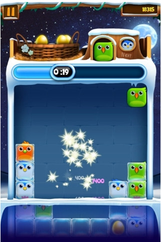2. 发光小鸟:由四只相同颜色的小鸟聚集而成,消除时可爆破周围的小鸟。