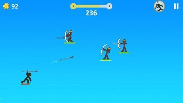 1、只需拖放手指即可瞄准并投掷长枪射击敌人。