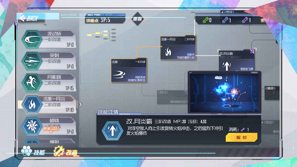 为了给您爽快的战斗体验,我们在技能改造中我们创新性的加入了连锁改造——在战斗中可以同一个按键连续释放多个技能组合;