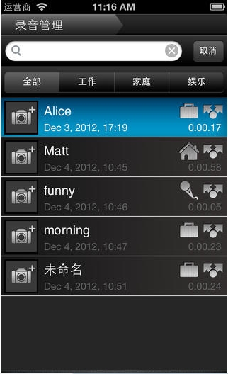 2. 内置声音内录功能,能够录制手机内部声音,免去环境杂音的干扰。
