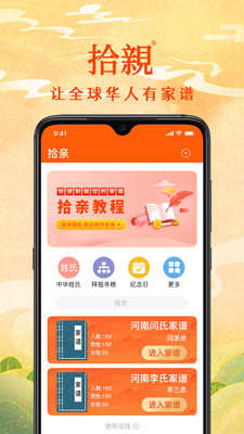 1. 下载并安装拾亲家谱安卓软件。