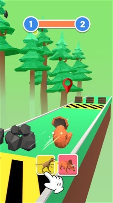 2. 跑酷冒险:游戏的主要玩法是跑酷,玩家需要控制恐龙在各种复杂地形中快速前进,躲避障碍物,同时收集道具和资源。