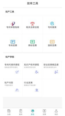 2. 功能模块:软件包含多个功能模块,如智燃头条、知产学院、智燃题库、效率工具等,为用户提供丰富的学习资源和便捷的工具。