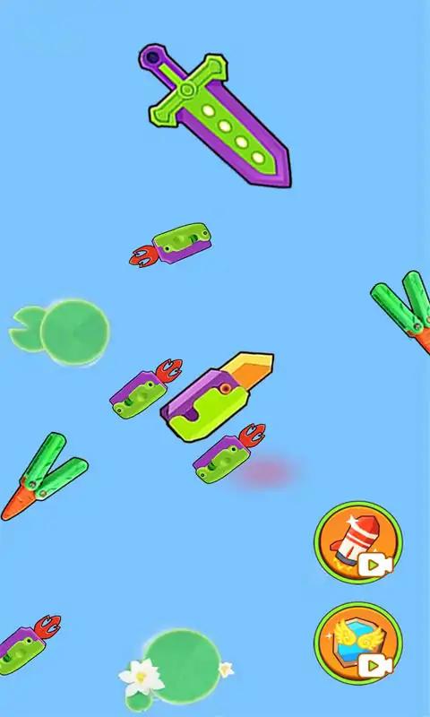 3. 通过滑动屏幕操控道具进行合并升级,逐步解锁更高级别的刀具形态。