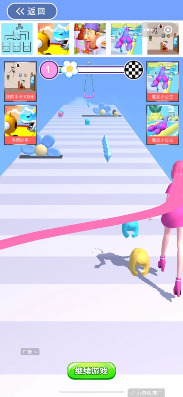 2. 收集相同颜色头发:赛道上散落着不同颜色的头发,玩家需要收集与小仙女头发颜色相同的头发,以增加头发长度,提升成绩。