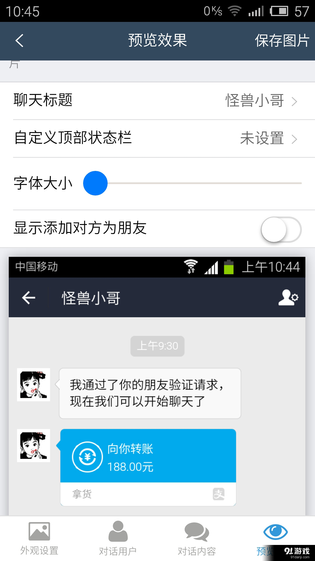 3. 可以模拟微信、支付宝等软件的对话和转账界面,支持高度自定义,如金额、头像、昵称、内容、图片、发送时间等。