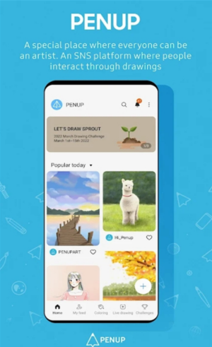 4. 社区和分享功能:penup构建了一个艺术社区,用户可以在这里分享作品、参与挑战、关注其他艺术家,获取最新的绘画资讯和创意灵感。