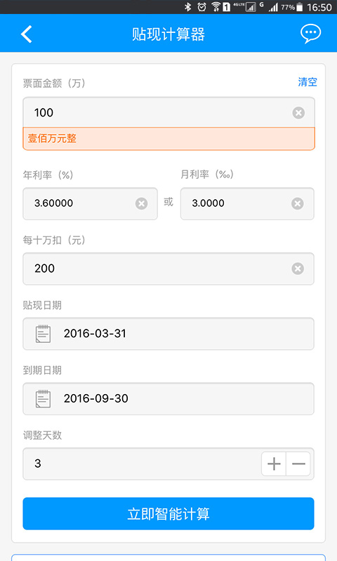 4. 贴现计算器:提供手机端贴现计算器,用户可以随时随地进行贴现计算,提高工作效率。