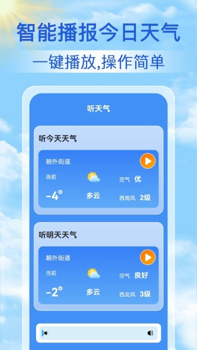 3. 增加了天气语音播报功能,用户可以通过语音了解天气状况,使用更加便捷。
