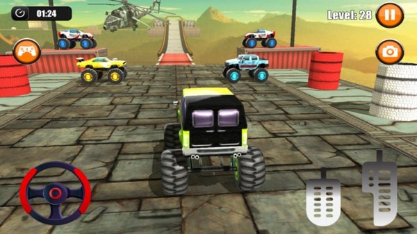 怪物赛车模拟器是一款充满挑战与冒险的模拟驾驶类安卓游戏。游戏以3d写实风格呈现,玩家将驾驶各种造型奇特的越野车,在各种崎岖不平的赛道上进行竞速比赛。游戏内的赛道设计多样,每个赛道都充满了各种障碍和陷阱,玩家需要依靠高超的驾驶技术,灵活躲避障碍,甩开对手,成功抵达目的地。游戏不仅考验玩家的驾驶技术,还考验玩家的反应力和策略规划能力。