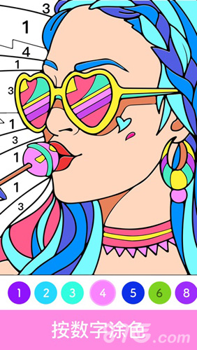 2. 每张图片都用数字标记了各个区域,玩家只需按照数字顺序点击对应的颜色块即可完成涂色。