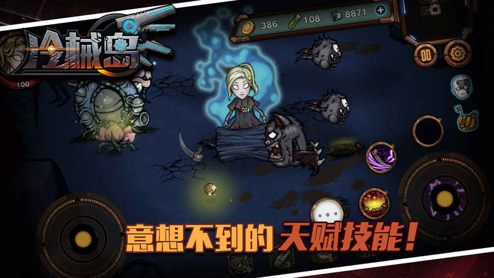 冷械岛是一款画风荒诞、设定奇葩的高难度roguelike类型生存游戏。玩家将扮演一名勇敢的主角,为了寻找重病的妹妹,踏上了一座充满未知与危险的诡异小岛。在这座岛屿上,主角需要不断地击败面前的怪物,拆下它们的装备换在自己身上,并由此获得怪物的技能,去打败更强大的敌人。游戏充满了快节奏的美漫风格,为玩家带来了极致的操作体验。
