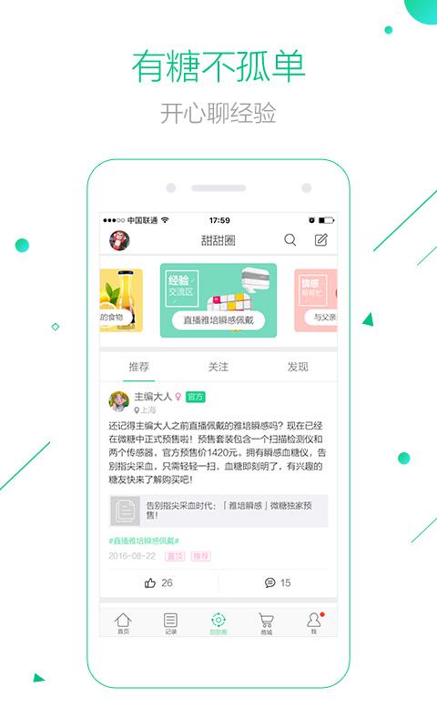2. 社区互动:软件内设有活跃的糖友社区,用户可以在这里分享经验、交流心得,共同面对糖尿病的挑战。