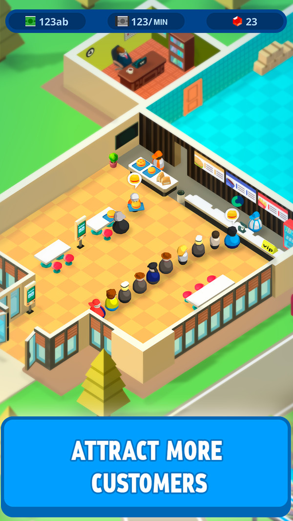 2. 游戏提供招聘功能,玩家可以雇佣更多的服务人员,提升顾客体验。