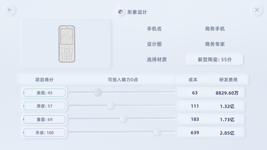 1. 丰富的产品线:从低端到高端,从功能机到智能机,玩家可以自由设计研发各类手机产品。