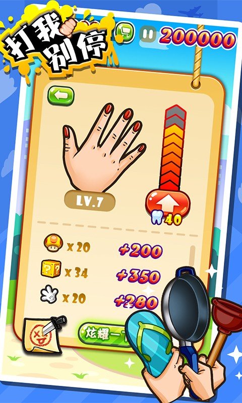 1. 多种武器和道具:游戏内提供了多种武器和道具,如拖鞋、拳套、平底锅等,每一种都能给玩家带来不同的打击体验。