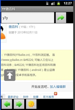 yy微百科是一款基于android平台的公益性质微百科软件。该软件旨在为用户提供便捷、全面的百科知识查询服务,用户可以通过输入三位以上的yy码快速获取相关的百科词条信息。yy微百科不仅提供了丰富的词条内容,还将百科知识与微博功能相结合,形成了独特的社交互动体验。此外,yy微百科的界面设计简洁明了,操作便捷,使用户能够轻松上手并享受知识探索的乐趣。