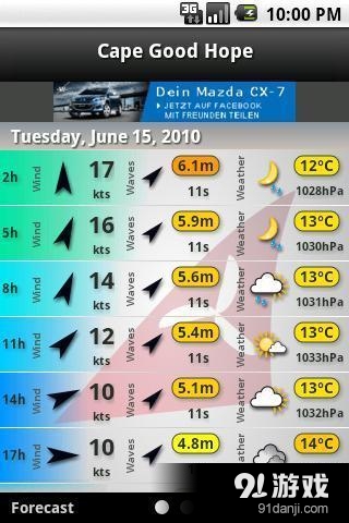 1. 详细数据:除了基本的风速和风向外,windfinder还提供包括温度、湿度、气压、波高、波周期和波向等在内的详细天气数据。