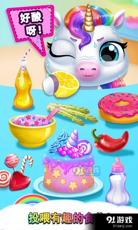 2. 营养美食:玩家可以自由选择蔬菜、水果、糖果、糕点等美食来喂养独角兽宝宝,让它在健康中成长。