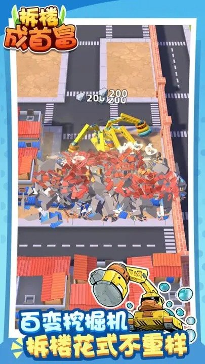 拆楼成首富内置菜单版是一款充满趣味和挑战的安卓游戏。在这款游戏中,玩家将扮演一位拆迁公司的老板,通过驾驶挖掘机等重型机械,拆除各种建筑,获取利润并逐渐积累财富。游戏内置菜单功能,为玩家提供了更多便捷的游戏体验,让玩家在享受拆楼乐趣的同时,也能轻松管理自己的公司,逐步成为首富。