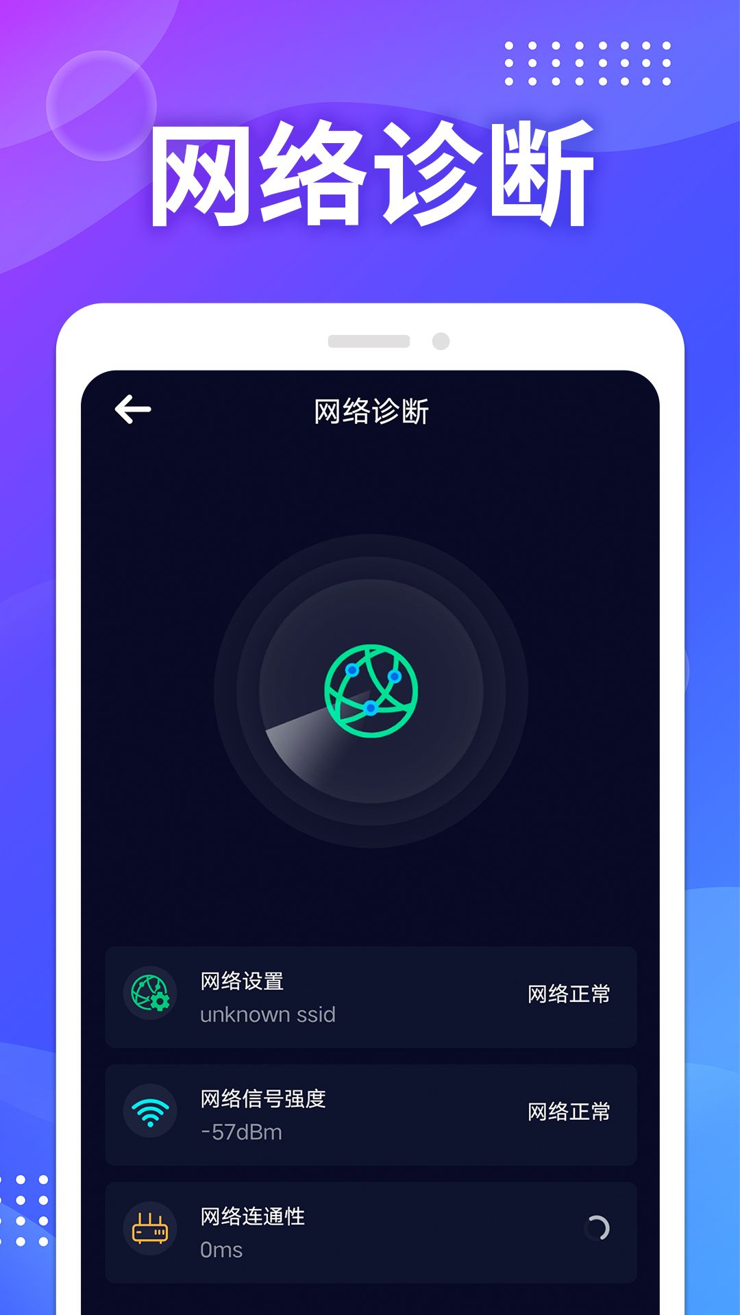 2. 全面诊断:除了测速外,软件还提供了全面的网络诊断功能,包括信号强度、网络延迟、丢包率等关键指标的检测,帮助用户全面了解网络状况。