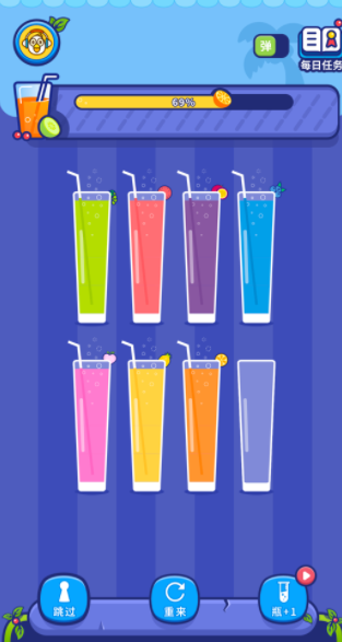 2. 多样化关卡:游戏设有多个难度不同的关卡,玩家可以根据自己的喜好和能力选择不同的关卡进行挑战,随着关卡的推进,果汁颜色和数量不断增加,挑战难度逐渐升级。