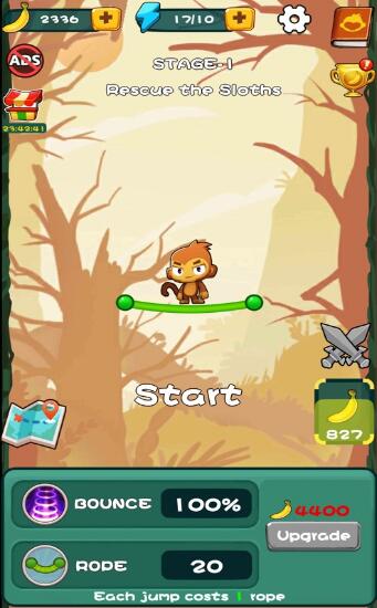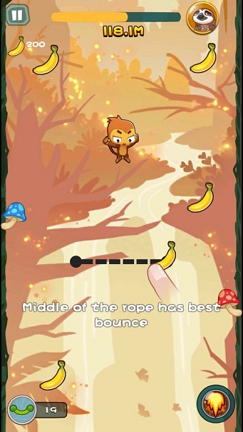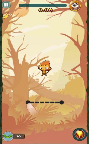 1. 滑动手指制作弹力绳:玩家需要滑动手指制作弹力绳,利用弹力让猴子越跳越高。