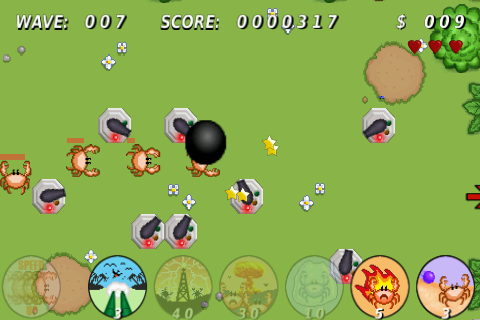 2. 玩法介绍:玩家需要在地图上选择合适的位置建造防御塔,以阻挡从海洋中涌来的虾兵蟹将等生物。游戏分为“容易”和“中等”两个难度等级,内置多张不同风格和难度的地图,每张地图都有其独特的敌人和挑战。