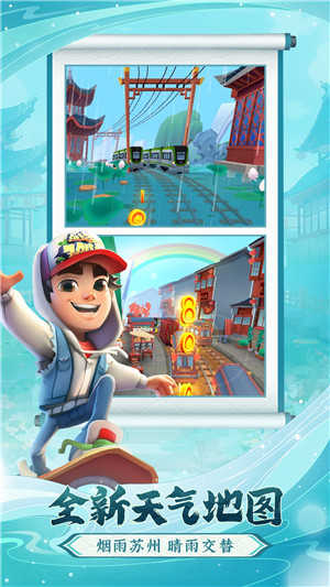 2. 场景多样:地铁跑酷带领玩家环游世界,每个版本都会展示一个城市的风采,从繁华的都市到静谧的乡村,玩家可以尽情欣赏各地的美景。