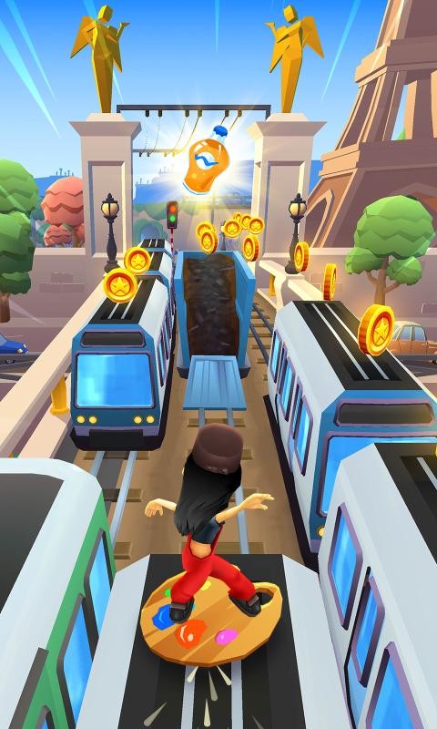 1. 游戏目标:玩家需控制角色在地铁轨道上奔跑,躲避警卫和障碍物,尽可能收集金币和道具,以获得更高的分数和排名。