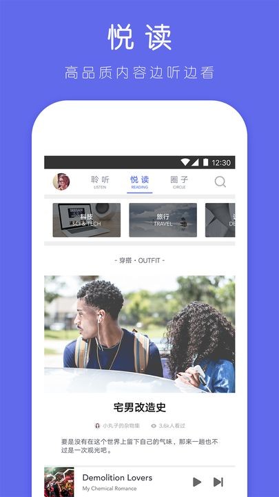 1. 沉浸式音乐场景:平台以“猎乐”音乐专题、智能选曲fm电台为核心功能,辅以乐人访谈、文艺内容推荐等模块,打造沉浸式音乐体验。