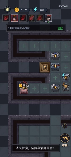 2. 快速升级门:门是抵御猛鬼入侵的第一道防线,玩家需要尽快升级门,提高其防御能力。