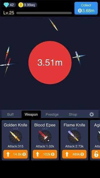 1. 游戏目标:玩家的目标是通过点击屏幕投放武器攻击小球,清空所有小球即可通关并获得奖励。
