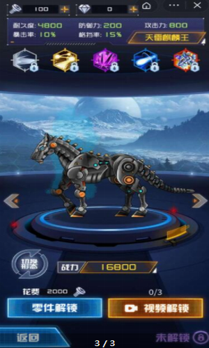 1. 机甲收集:游戏中玩家可以通过战斗和任务获取机甲碎片,用于解锁和升级机甲。不同的机甲有不同的战斗属性和技能,玩家需要根据自己的战斗需求进行选择。