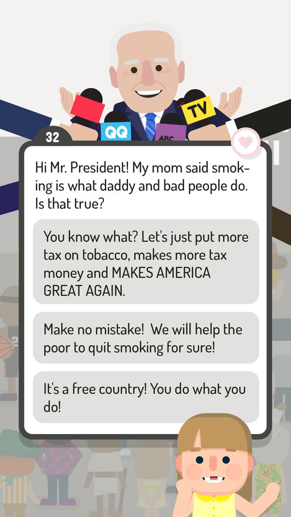 总统竞选模拟是一款极具趣味性的模拟经营类安卓游戏,玩家将扮演一位总统候选人,通过发表演讲、与各界人士交谈、进行各种拉票活动等方式,努力争取选民的支持,最终赢得总统大选。