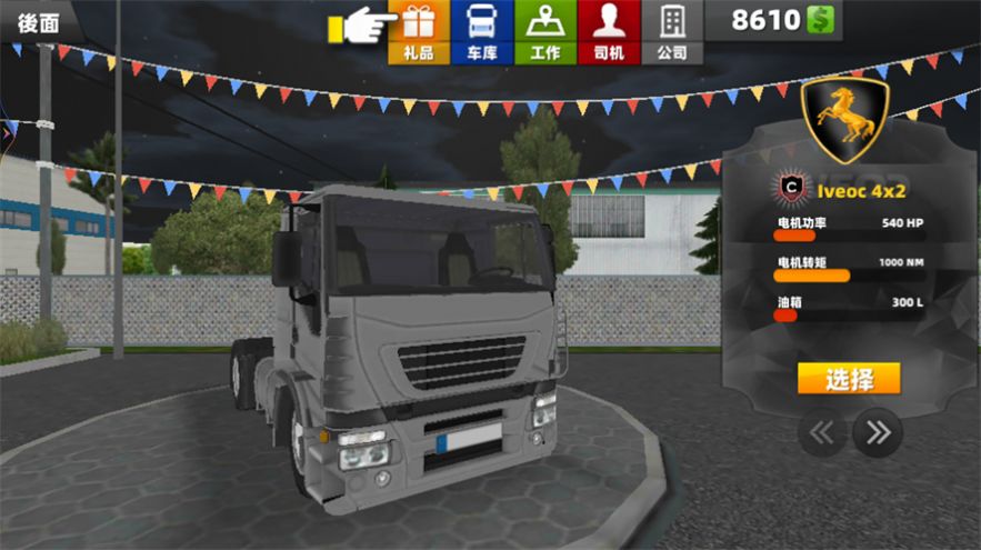 2. 车辆选择:游戏中拥有多种不同型号的卡车供玩家选择,每种卡车都有不同的功能、配置和外观装饰,玩家可以根据自己的喜好和任务需求进行选择。