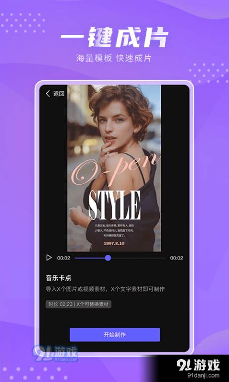 4. 素材自动匹配:用户选择素材后,极剪能自动根据素材生成精美的视频,当然效果不满意可随时替换。