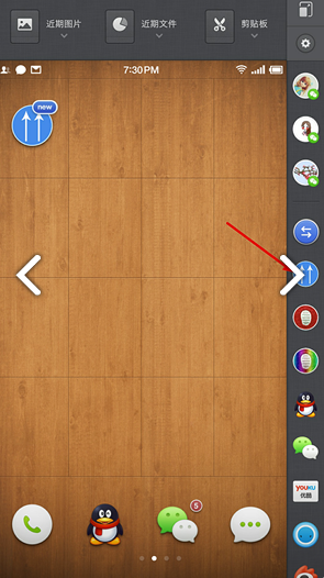 2. 设置一个简单的手势以调用顶部栏和边栏的快捷功能。