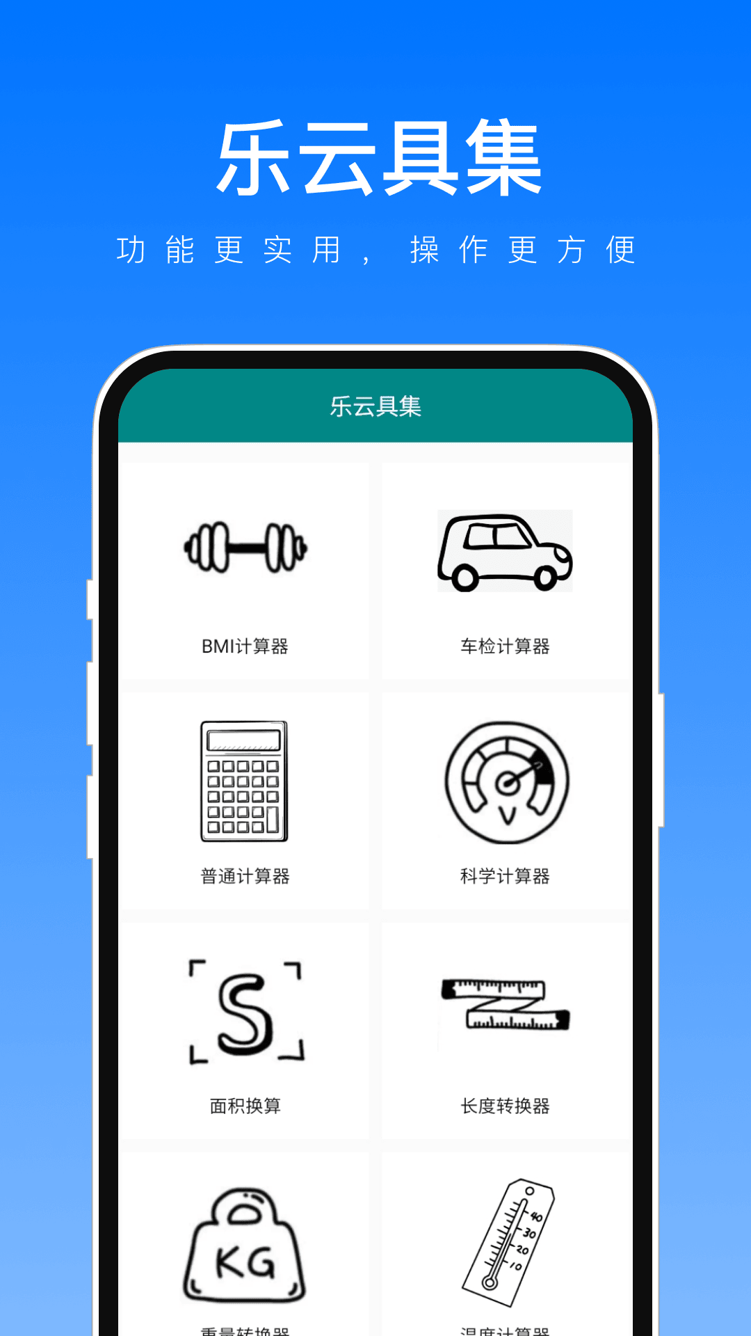 乐云具集是一款专为安卓用户设计的全能手机工具箱助手软件,它集成了多种实用工具于一体,旨在为用户提供便捷、高效、全面的手机使用体验。无论是日常计算、单位换算,还是图片处理、二维码生成等,乐云具集都能轻松应对,让用户的手机功能更加强大,操作更加简便。其简洁易用的界面设计和多样化的功能服务,使其成为安卓手机用户中备受好评的实用工具之一。