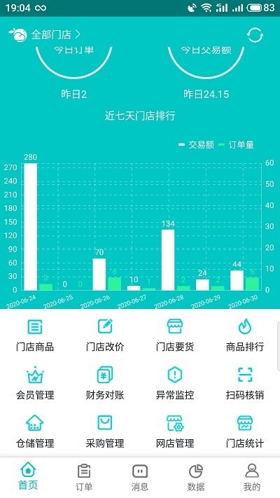 4. 数据统计:提供详细的销售数据、会员数据、库存数据等统计报表,帮助商家了解经营情况。
