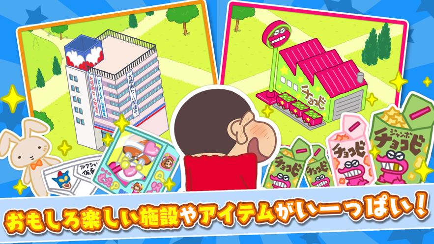春日部大开发是一款基于著名动漫蜡笔小新改编的模拟经营类手机游戏。玩家将扮演蜡笔小新及其朋友们,共同建设和发展春日部这个充满欢笑和温馨的小镇。游戏以蜡笔小新动画为背景,通过精美的日系画风和丰富的玩法,为玩家带来了一场充满创意与乐趣的模拟经营体验。玩家可以自由地规划城市布局,建造各种设施,与角色互动,并在游戏中享受建设、管理和防御的多重乐趣。