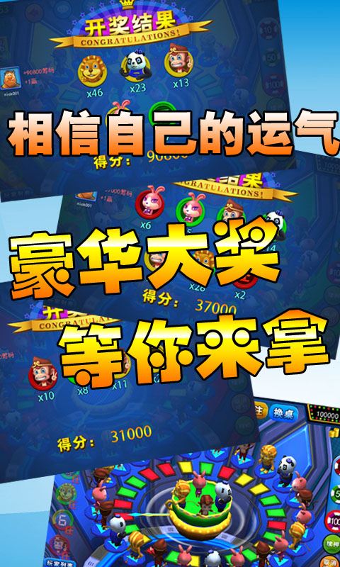 2. 等待开奖:押注时间结束后,游戏画面中的转轮和指针开始转动,当停下后,指针指向的颜色和动物(必须同时满足)即为中奖动物。