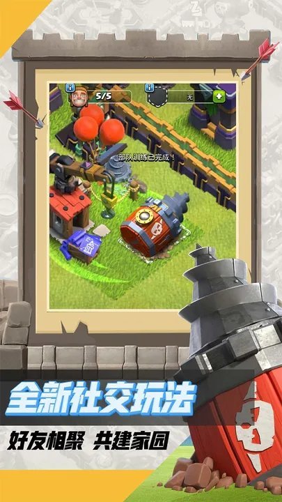 3. 防御设施:玩家可以建造各种防御设施,如加农炮、箭塔、迫击炮等,保卫自己的村庄免受敌人侵袭。