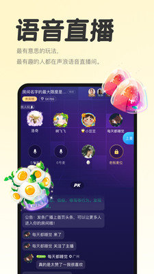 2. 房间互动:用户可以创建或加入各种主题房间,与房间内的其他用户进行语音聊天、游戏互动等。