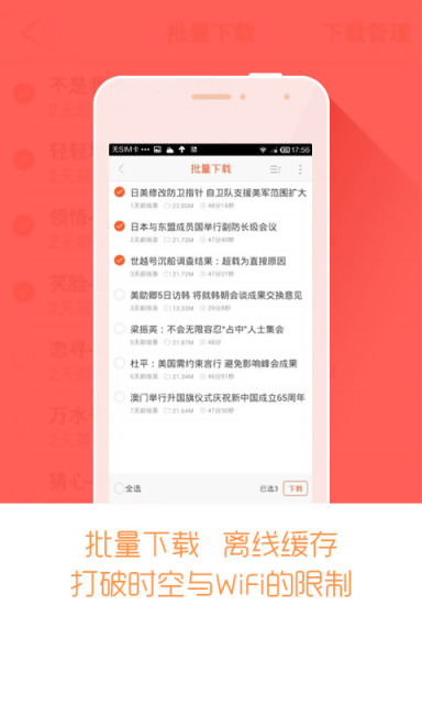 3. 节省流量:支持多种网络模式,包括wifi、3g等,并内置流量统计功能,帮助用户节省流量费用。