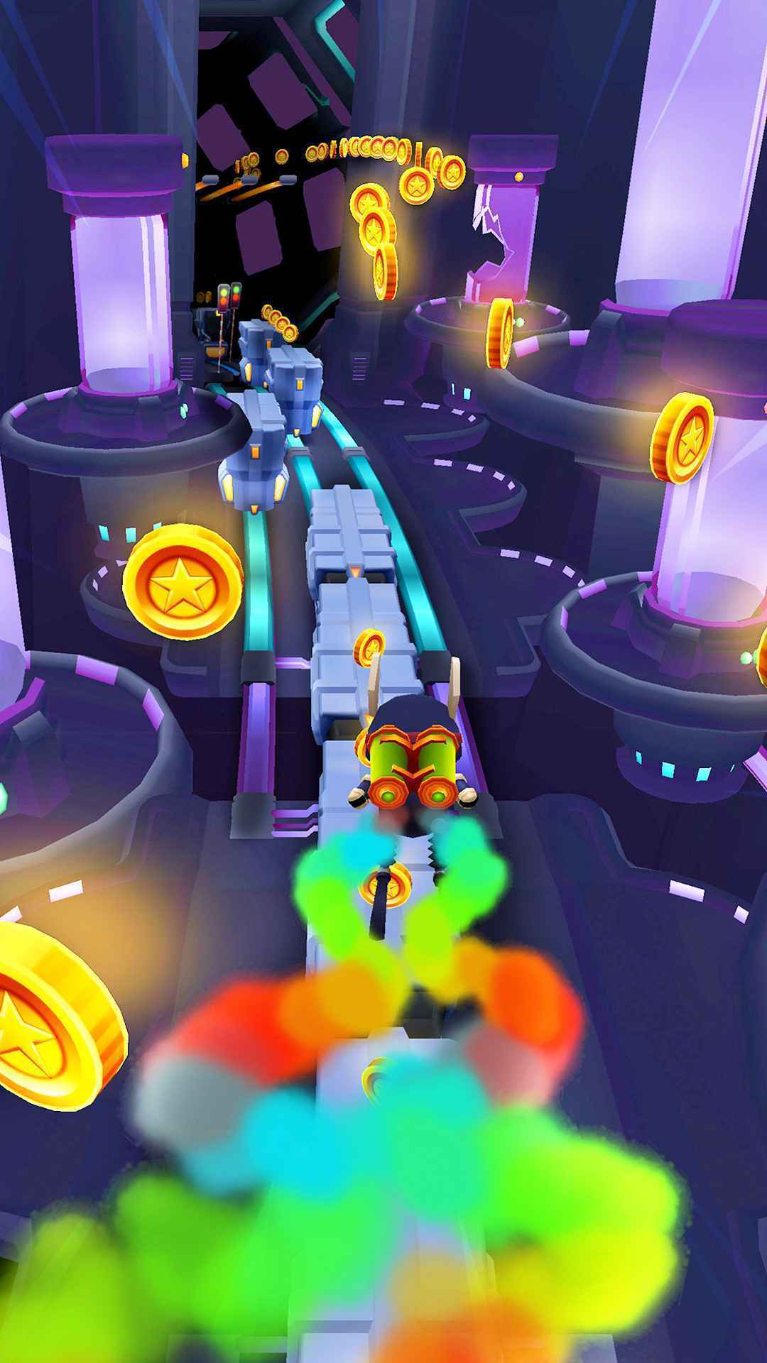 3. 收集道具:在游戏中收集各种道具,如磁铁、滑板、喷气背包等,帮助你在跑酷过程中获得优势。
